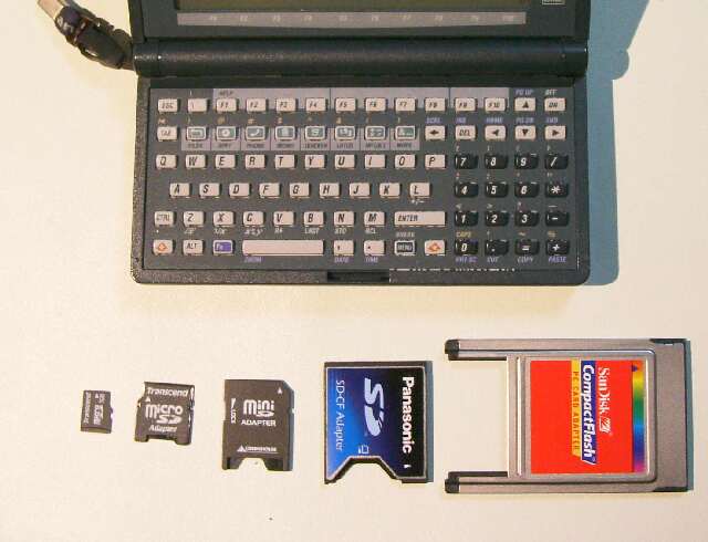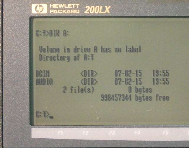 ここで特筆すべきは、256MB(メガバイト)、1GB(ギガバイト)のカード共に、なんらフォーマット等せずに、アダプタを経由するだけでそのまま200LXで認識し、読み書きできることです。