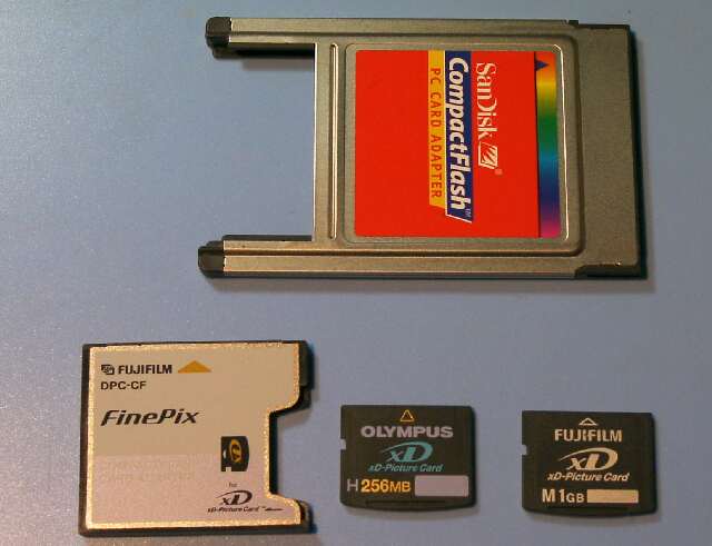 写真上から、コンパクトフラッシュカードtype1アダプタ