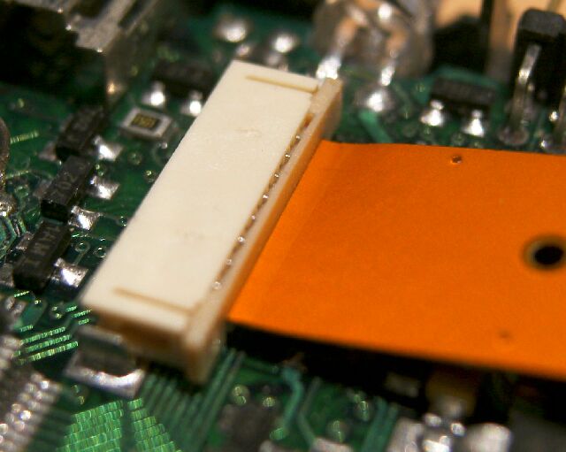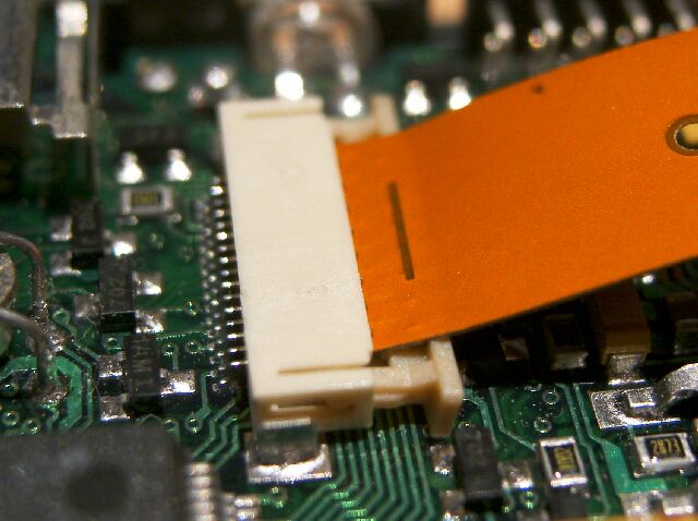 この写真はフレキケーブルが抜けるように、コネクタを緩めた写真ですが、