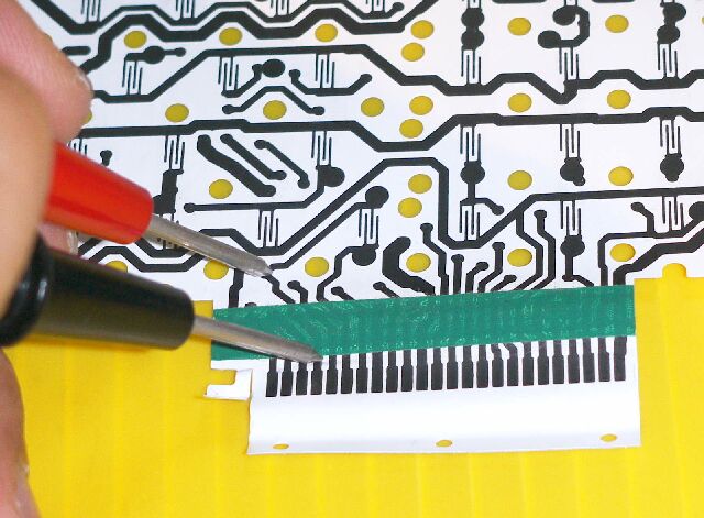 テスターでキーパターンの導通を検査しています。