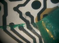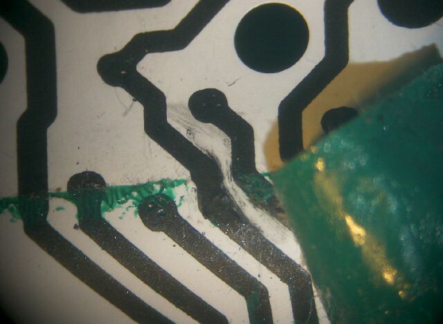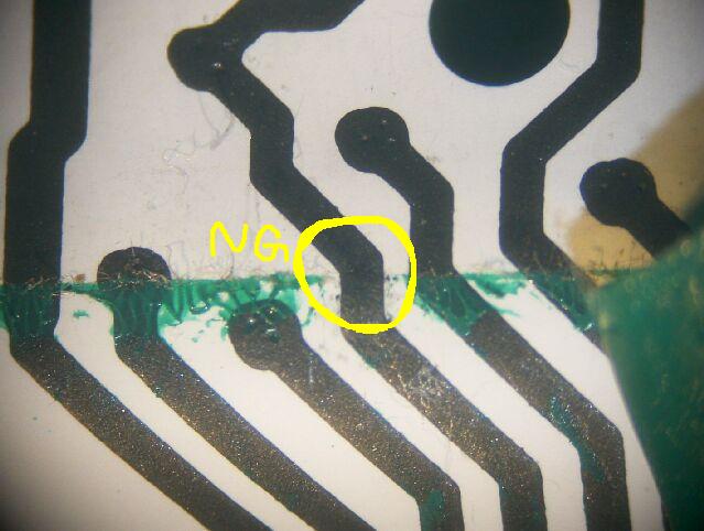 修理として、導通の無い部分を挟んで1cm程度にわたって導電塗料