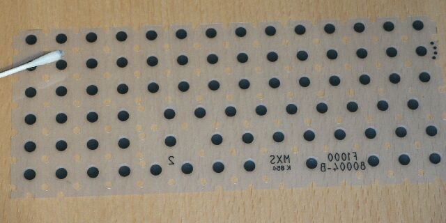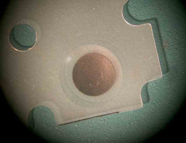 | 何らかの絶縁性のゴミが接点部に侵入して付着し接触不良になったものです。 この汚れを落とし、電源ON/OFFは良好になりました。 このゴミのように見えるものは、瞬間接着剤を近くで使用したようなときにも生ずることがあります。 |
