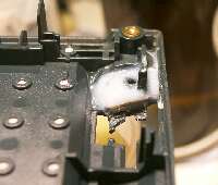 | 液晶が、いつのまにかガタガタ前後に動くようになってしまうことがあります。 このような場合、ヒンジの軸を支える本体側の受け部が割れている場合が多々あります。 以下は、割れた軸部の補修法です。 ここでの要点は、補強材を入れるという点にあります。 単に造形材で補修しただけでは、再度割れが入ってしまうためです。 |