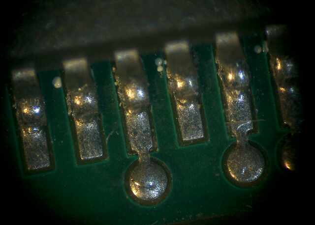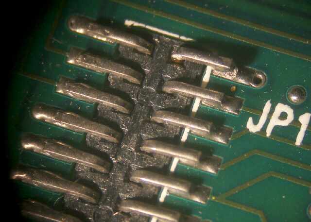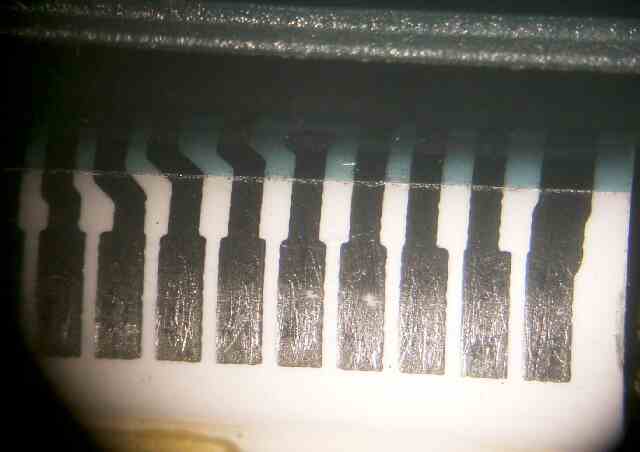 | 以下は、実際に一台のhp200lxに生じていた不具合と修理の一例です。 分解による検査と修理完了までの流れを実例で示します。 【故障状況】 机の上から落下させてしまったところ表示に規則的な縞模様が発生。 また、拡張メモリの認識に不具合が生じた。 (本機は米国で拡張64M、クロック倍速に改造したものということです。) 【検査により発見した不具合と修理】 (1)液晶に規則的な縞模様