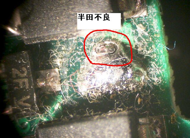 このため、裏面の半田の割れがそのまま通電不良となっていました。 |