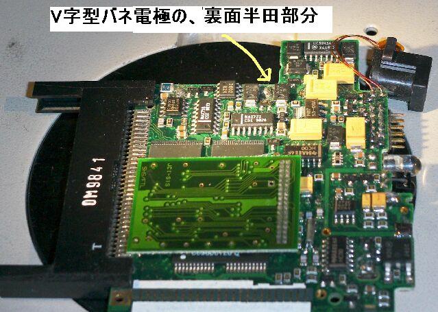 この写真は、V字型バネ電極を裏から固定させている半田部です。 |