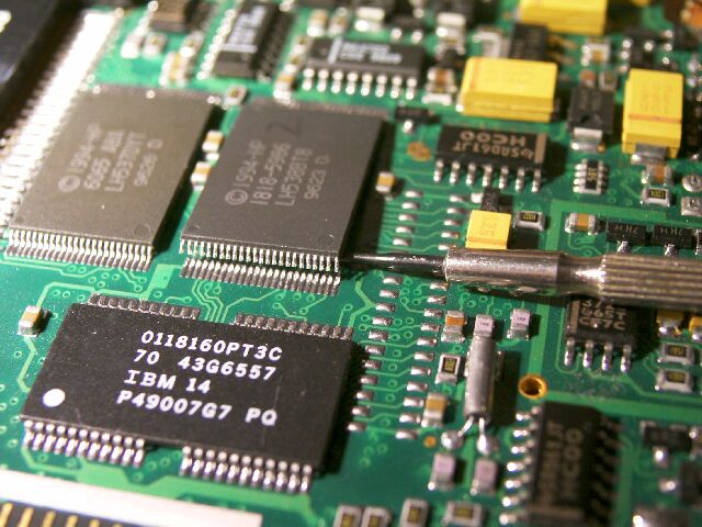 | 結局原因は、ROMの足が半田割れにより、浮いていました。 これを再度半田(Re-soldering)して正常になりました。 |