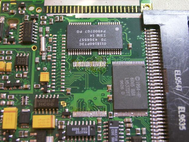 | hp200LX 故障例 : 内蔵ソフトが作動しない。(ROM不具合) (hp200LX trouble: Built-in software non-actuation by ROM solder defect.) |