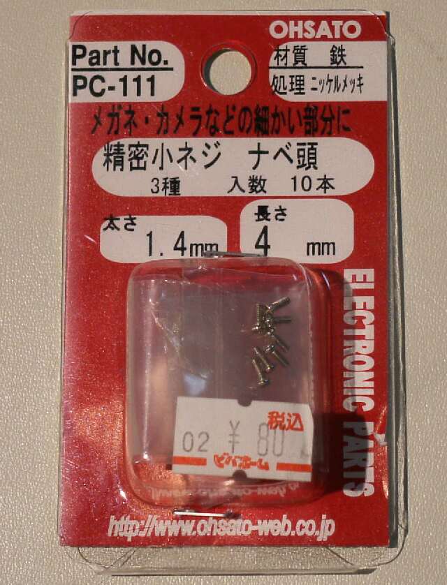 このネジは、(株)大里で一本から通販入手可能のようです。 |