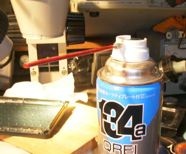 そこで、電子素子の冷却用に使用する冷却スプレーを使用してみました。