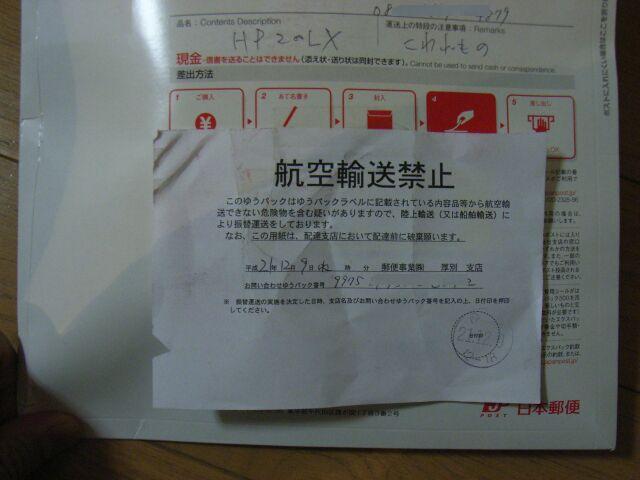 送付先 送られる際に: (1)電池ついて。 電池は、入れたままでもかまいません。 電池を抜くと C:ドライブが消失しますので、受領後に再構築しなくてはなりません。 バックアップ(待避)、リストア(復帰)が楽にできるかたでも、細かい設定等が復元できないときがあります。 ですので、Cドライブをそのまま保持させるためには電池を入れてください。 (必ず主電池(単三型)も入れてください。補助電池だけでは長時間の保持ができません。) その方が、無用な心配をしないですみます。(普段は完全リセットをすることが少ないので、不具合が出た場合、故障なのか、設定不良なのかがわからなくなることがあります。) その際には、もちろんプライベート(個人的)事項や重要事項等は待避(一時削除)させてください。 消さない場合は、移送の際の万一の紛失等で、漏洩が懸念されます。 もちろん電池を抜いてもかまいません。 その際には、「小型パソコンです、リチウム電池は使用していません。」と申告するか、「小型パソコン・リチウム電池なし」と見やすい位置に記載してください。 表示が無かったため、航空輸送禁止のラベルが貼られたEXPACK(エキスパック。エクスパックの間違い。2010年4月からレターパックに変わりました。)申告または、表示(記載)が無い場合には、リチウム電池が使われているものと推定され、航空機に搭載されません。 これにより、北海道や九州など航空輸送地域からの到着が1日以上遅れます。 説明:hp200LXでは、補助電池にボタン型リチウム電池(CR2032)を使用しています。 このため補助電池を抜いておけば、当然リチウム電池不使用となります。 ただし、抜かなくても(入れたままでも)リチウム電池が超小型のため、危険物に該当しません。 (リチウム量が危険に該当する規定量に満たないため、発火の恐れがない。) 電池メーカーの説明へのリンク 航空危険物についてへのリンク リチウムイオン電池又はリチウム金属電池若しくはこれら組み込んだ電子機器を内容とする郵便物等の取扱いについて→日本郵便へのリンク 梱包は、通常の「こわれもの」を送付するときと同様です。 宅配便や「ゆうパック」で大丈夫です。 ただし、hp200LXは、もともと携帯用に設計されているだけあって、比較的丈夫です。 このため、普通郵便やEXPACK500(厚紙仕様の専用封筒(248mm×340mm)の中に入れ放題で全国一律500円)でも問題なく受領しております。 |