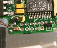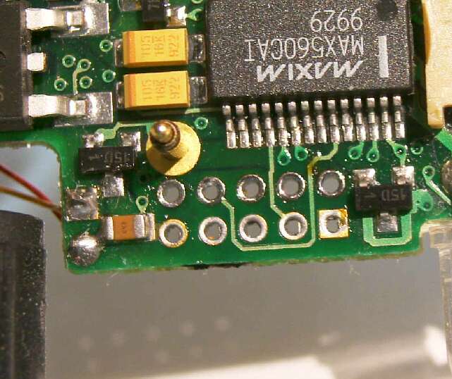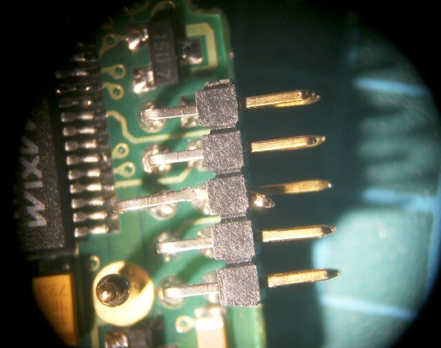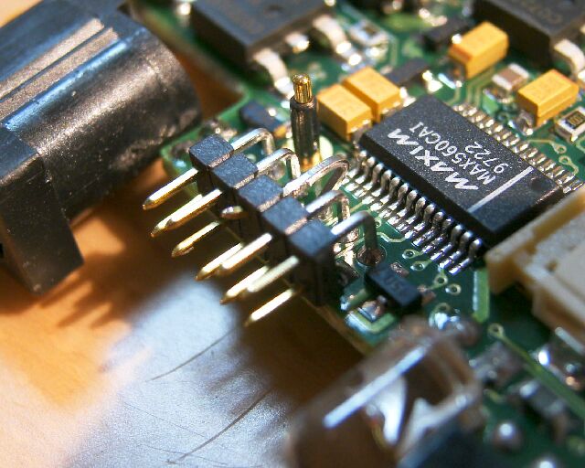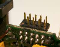 基板を取り出してよく見ると、ピンは折れているのではなく、引っ込んでいる状態でした。 |
