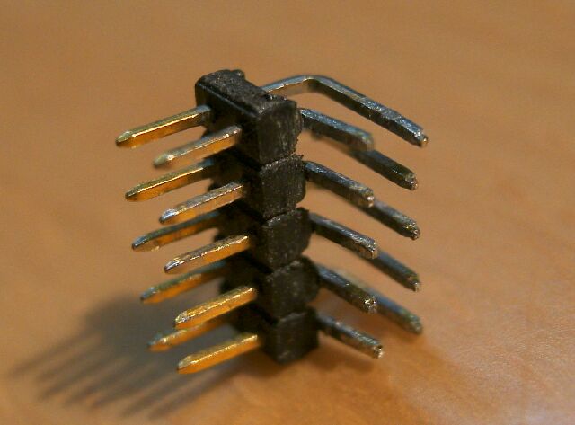 長く連なった状態のピンを入手して、5列分を切断して使えます。