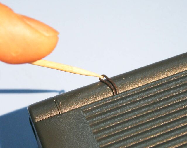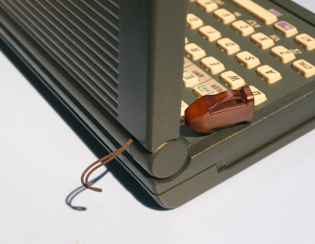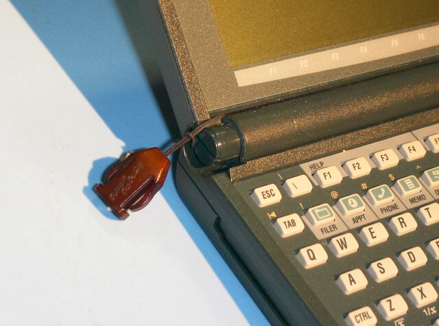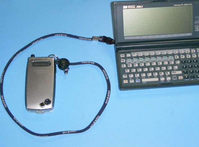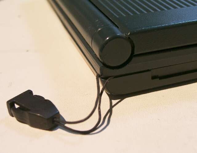 | 200LXは体(脳)の一部として使っている人が多いと思います。 ふと浮かんだ考えを入力したり、スケデュールを調べたり、辞書を使ったり、すぐ出して、しまえるところにおきたいものです。 そうなると怖いのが落下で、一度落とすと何らかの不具合を生じます。 特に液晶が割れてしまうと、再起不能になってしまいます。 落ちないようにするにはストラップ(釣り紐、掛け手)を使うことが最良です。 ストラップを付けるには、本体に穴をあけたり、ネジを緩めて隙間を作って糸を通す等の方法があります。 以下に本体に一切加工を施さずにストラップを付ける例を紹介いたします。 |