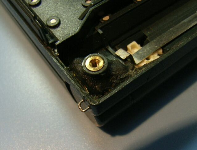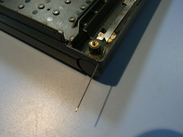 | hp200LX :ストラップ用リングの取り付け(美観を考慮) (hp200LX modify : install strap hook..) |