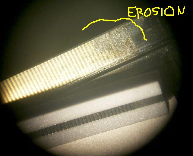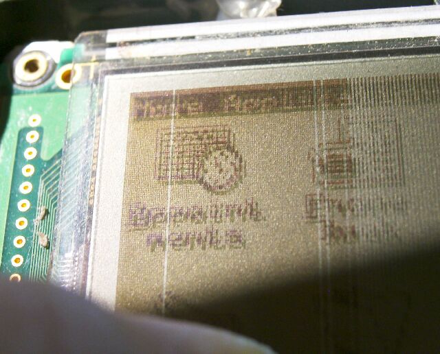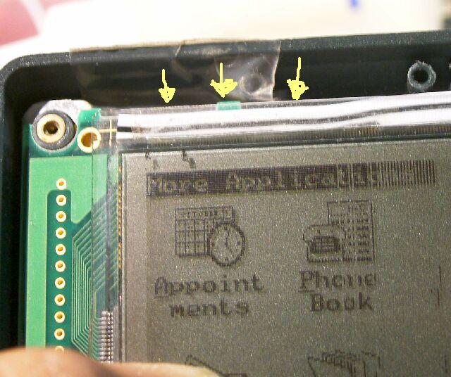 | hp200LX 故障例:液晶面の電極腐食による縦表示抜け (hp200LX trouble : fail display (line missing by conduter erosion) |