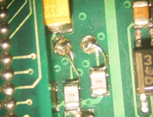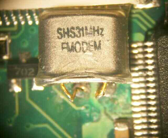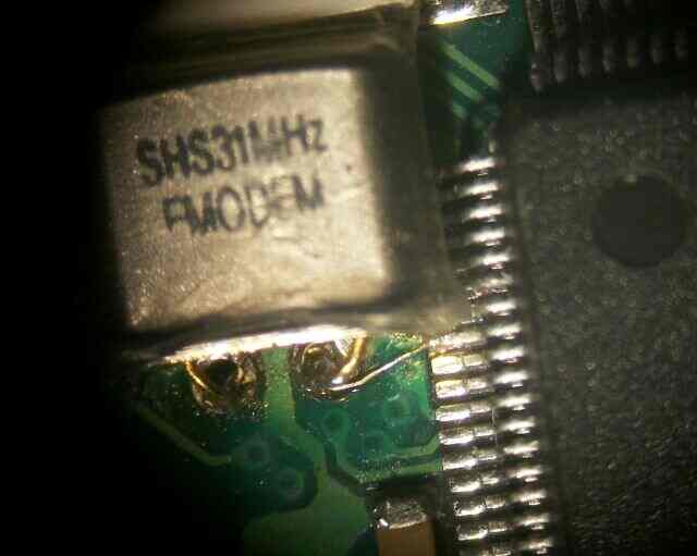 左の写真は水晶(倍速)の取り付け状態です。少し半田の乱れがあります。 何度が取り外した様子です。