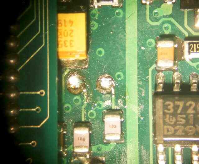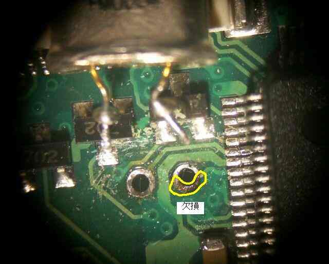前回の修理では、水晶を外していなかったため、上面のスルーホールにも欠損があるとは気づきませんでした。
