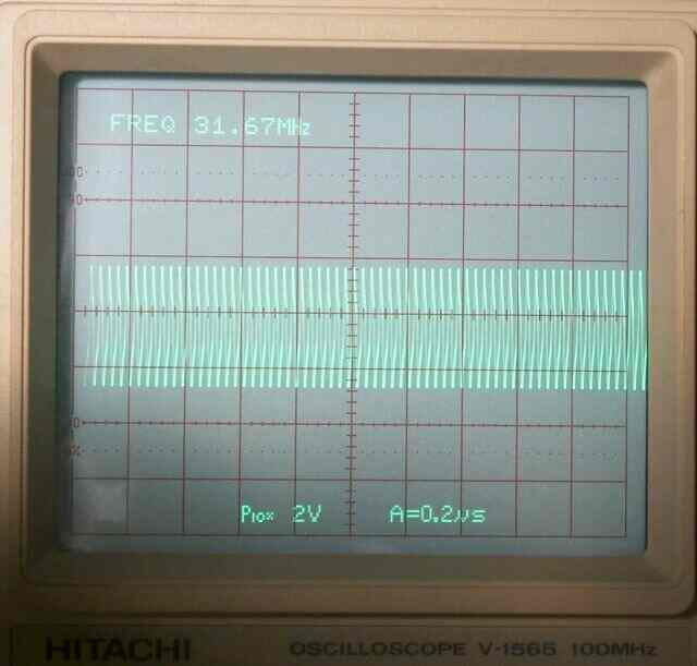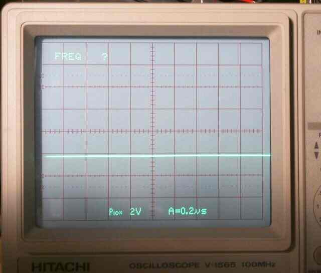 オシロスコープで波形を見ると、全く発振していない状態です。 |