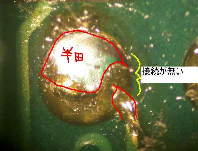 水晶取り付け部の裏面を詳細に点検すると、半田がついているように見える部分で、電気的接続が無い状態がありました。