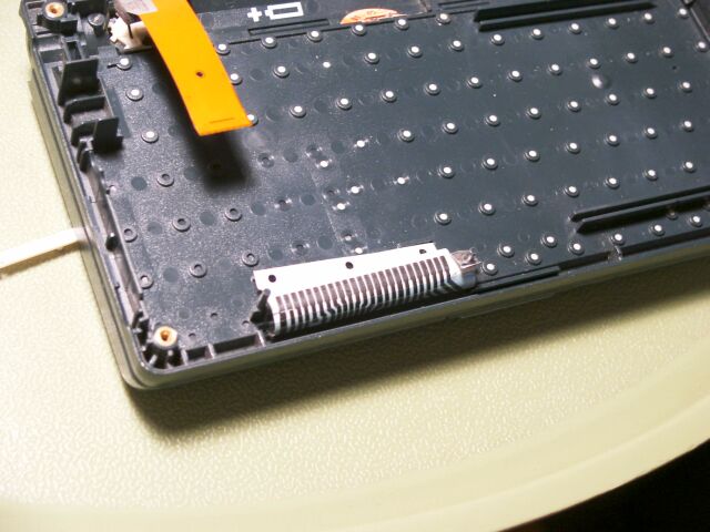 おそらく、分解しようとして、本体の隙間に細いものを入れた際に、内部のキーコネクタ電極を傷つけてしまったものと思われます。