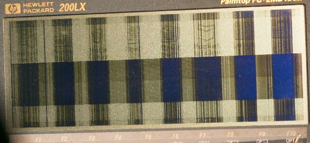 この例は、液晶全体に文字が出ず、不規則な模様が現れます。 液晶を動かすと模様が変化します。変化例