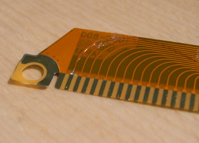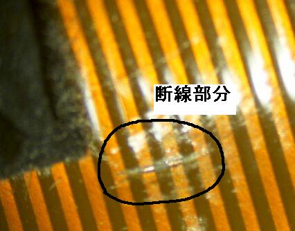 断線部が酸化している場合は、回復が困難ですが、導電接着剤を用いて修理ができました。