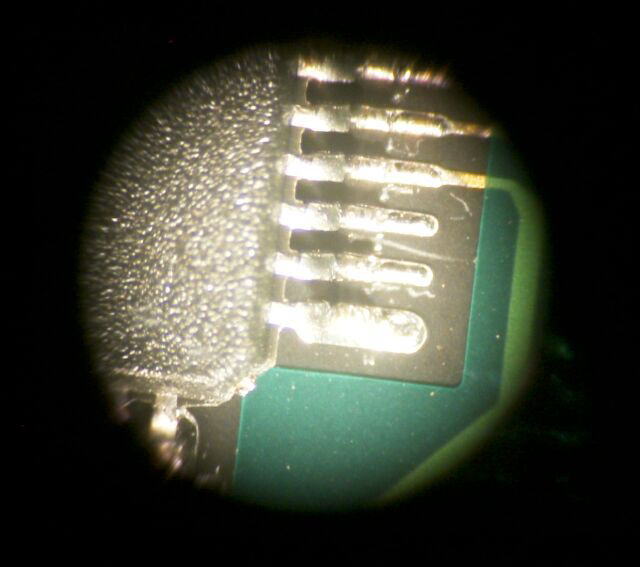 ⇒修理は顕微鏡を使っての半田補修を行います。