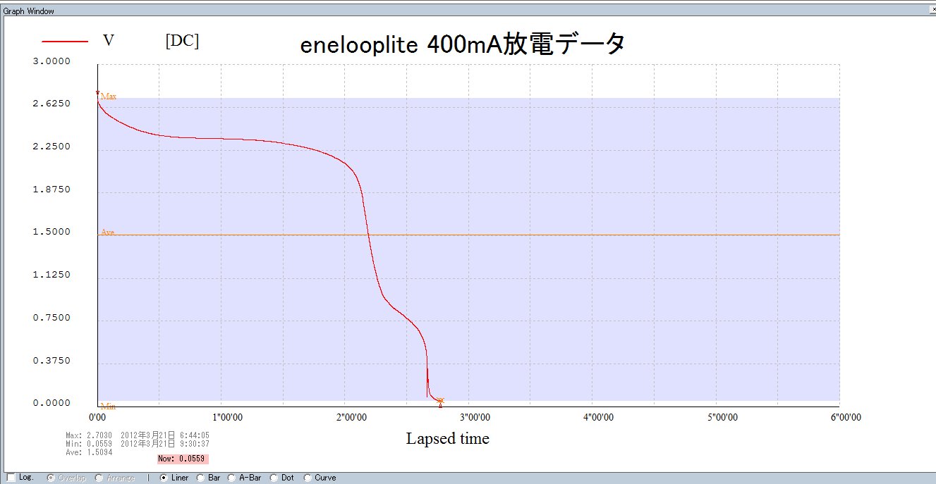 さきほど充電回復したeneloopliteを400mA負荷で完全放電させ空にしました。