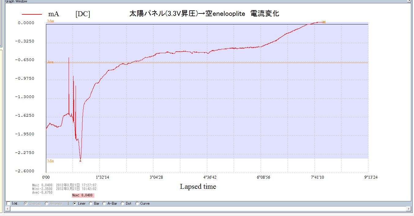 ちなみに電流値がマイナスになっているのは、太陽電池(コンバータ)→enelooplite