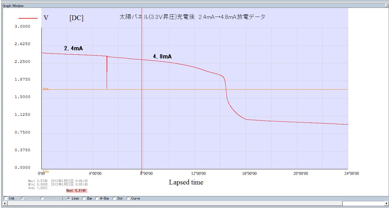 途中より2.4mAから4.8mAへ変更、よって、充電された容量は
