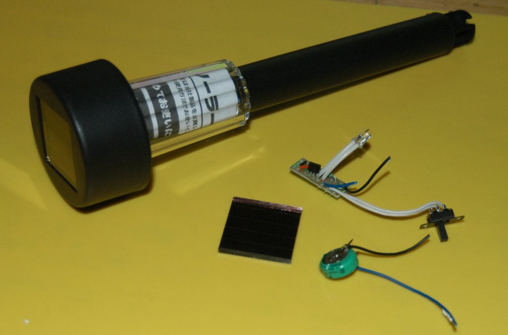 この充電器をバラして電池BOXにして、先日購入したガーデンLEDのパネルを何枚も並列につければ、ニッケル水素電池用ソーラー充電器になります。