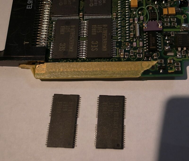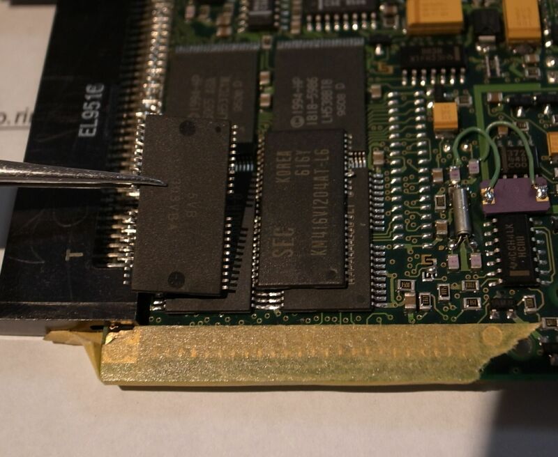今回は、部品の入手が困難なことを考え、コネクタもドーターも用いず、基板に直接メモリを載せる(カメカメ)方法で改造いたしました。