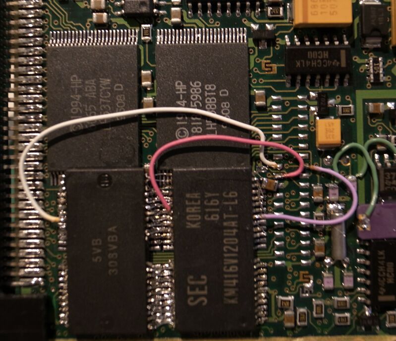 この改造は、1MB機の基板にコネクタを取り付け、拡張ボード(ドーター)を装着することで、5MBにする方法が普通です。