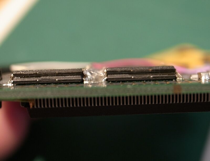 メモリを側面からみると、重なった状況がよくわかります。 |