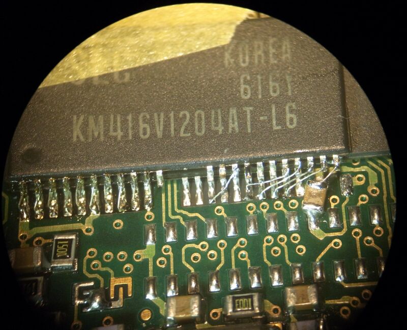 配線は、未絶縁の細線なので、細い半田ごてと顕微鏡が無いと、相当に難しいです。 線同志が接触すれば、短絡してしまいます。 今までのところ拡張後に、認識不良などの不具合はありません。 |