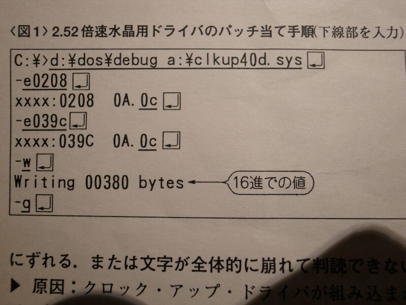 記事の通りに初めてやってみました。 HARUYAさん作の40Mhz用ドライバ(入手先) clkup40d.sysに、debugコマンドを用いて修正するようです。 詳細は不明です。 さすがですね。 200LX全盛時は色々な方が力を注いでいたようです。 |