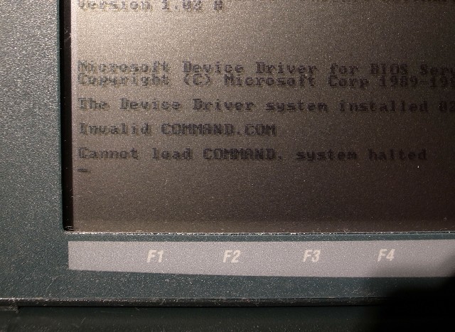 この機体では、40[Mhz]に切り換えると、起動の途中で止まります。 画面では見にくいですが、 Invalid COMMAND.COM Cannot load COMMAND. system halted コマンドコムをロードできません。 システムを停止します。 |