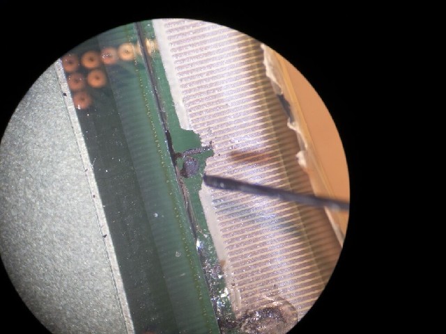 この機では、40Mhzに切り換えると、左端が表示されません。 液晶裏のICの半田不良でも同様の表示になりますが、バックグランド(背景色)が出ているところが異なります。 36Mhzに切り換えれば、全く正常表示をしますので、40Mhzでの問題です。 (超速40Mhz用のドライバは当てて(導入して)います。) |