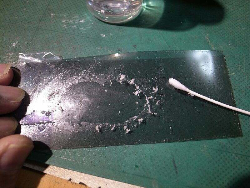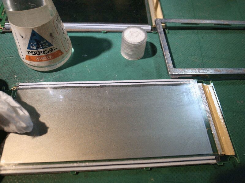 | アクリルサンデー(商標)で仕上げの拭き取りを行えば、鏡面のようにきれいになります。( 004) 修理と言っても剥がした偏光板は硬化、変色して使えません。 結局、別の偏光板を持ってくるしかありません。 それらしい偏光板 何より、コントラストが綺麗に得られません。 薄青い表示にしかなりません。