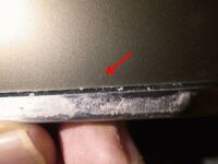 | 初めての移設。 カッターで掴(つか)んだ傷がわずかに残っている( 011)ものの、カバーを付ければ見えないところだし、意外と簡単だったと感じました。 しかし、よく見ると埃(ほこり)が入ってしまいました。( 012赤矢印) 間髪置かずに移設したつもりだったのですが、静電気もあるし、ほこりは天敵ですね。 |