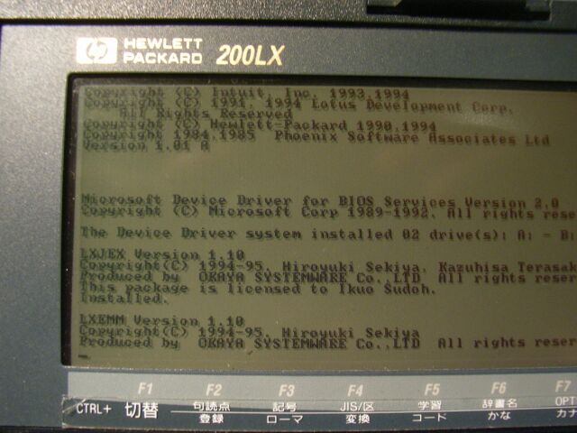 ここでの説明は、ドライバの組み込み方の一例です。 日本語化ソフトを入れたまま、設定をご自分でせずに使っているような場合には、 ソフトの再インストールや、故障時の復帰で困ってしまうことがあるかと思います。 それは、200LXは初期のパソコンであるため、DOS(ドス)のパソコンを使って自分で設定したことがなければ、ほとんど復旧できないからです。 昔、PC9801というNECのDOSパソコンが日本での標準であったころに、DOS/V(IBM)パソコンという、米国のパソコンが入ってきたときを思い出します。