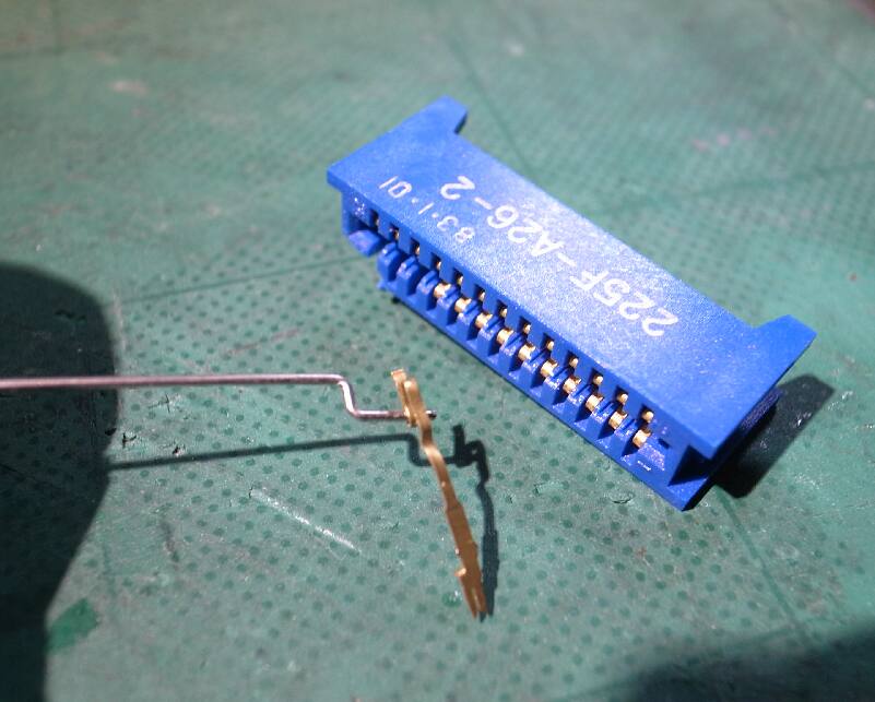 基板上に設けた電極を、基板ごと差し込むためのコネクタの電極を取り出してみると、使えそうです。(右写真 青いコネクタ(receptacle)P/N